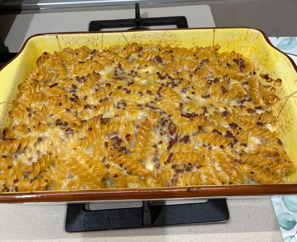 5. In genere io tengo da parte circa 200 ml di brodo caldo extra, perché quando metto la pasta nel tegame la besciamella senza glutine tende a seccarsi velocemente per cui allungo con quest’altro po’ di brodo